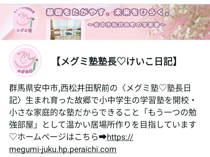 ♡問い合わせはこちら♡ ⇩ 090-2437‐9759 メグミ塾専用ダイヤル InstagramのDMからも お受けいたします できましたら、 ㈫㈮の学習時間帯以外で お願いいたします よろしくお願いいたします 【メグミ塾 わかまつけいこ】 |